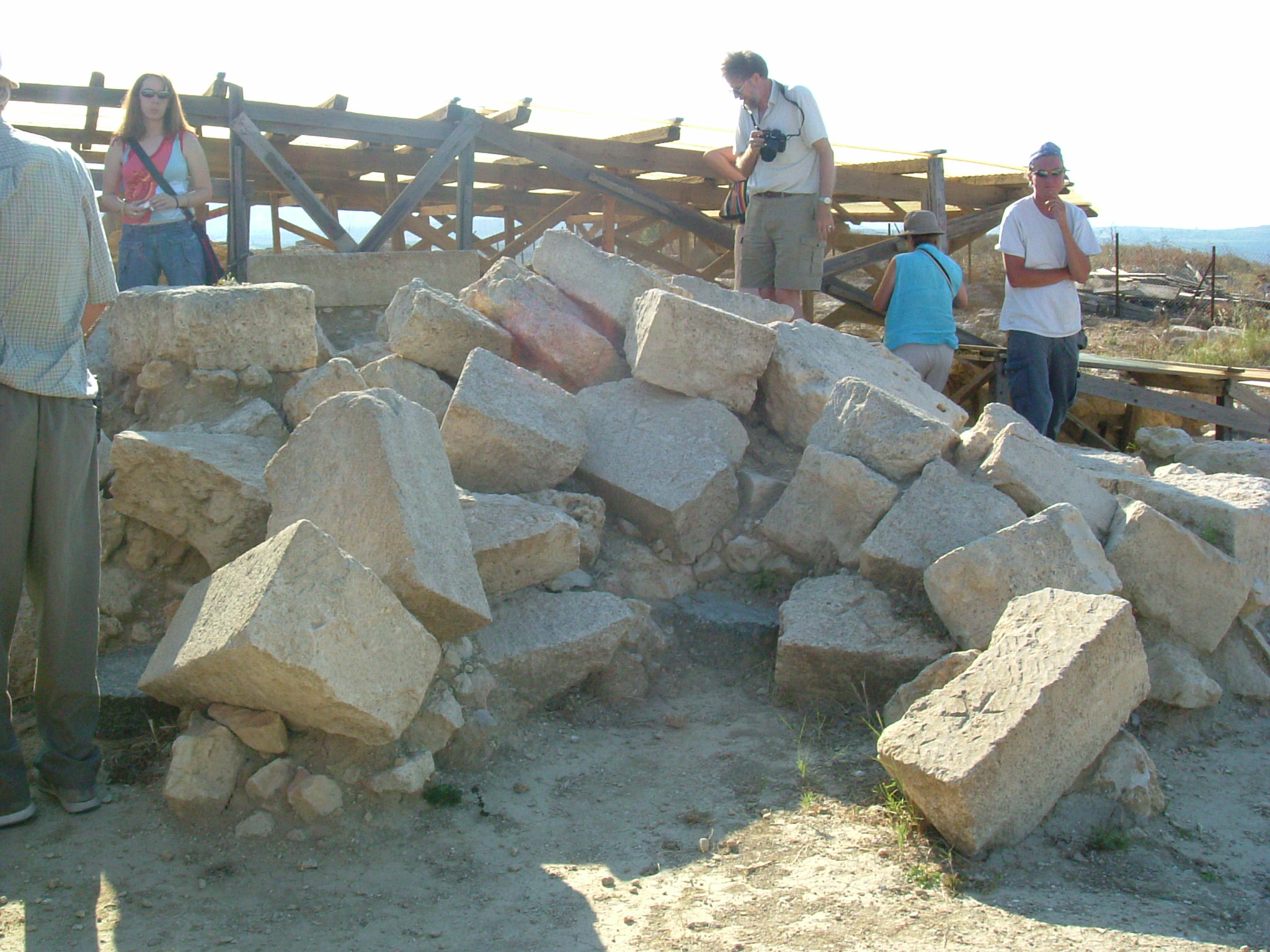 The possible ‘throne room’ (or area as ‘el fresco’) at Malia from the central court – this is something like Knossos may have looked like if Evans hadn’t reconstructed some of it (ignore the object centre/right foreground – it’s a cannon ball but Venetian, not Minoan!)