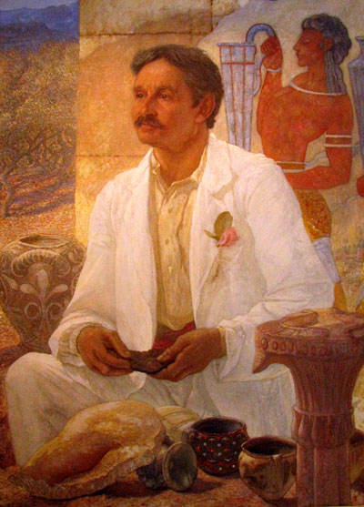 Arthur Evans at Knossos (painting from the Ashmolean Museum, Oxford – the museum is well worth a visit for a ‘taste’ of the Minoan world)