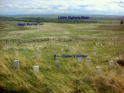 In the distance from Last Stand Hill can be seen more markers of those who fell trying to escape to the river through Deep Ravine